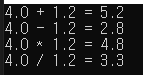 printf("%.1f / %.1f = %.1f\n", a, b, a / b);