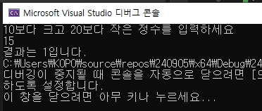 printf("결과는 %d입니다.", 10 < a && 20 > a);