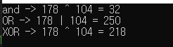 printf("and -> %d ^ %d = %d\n", a, b, a & b);