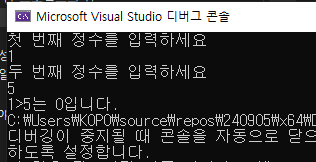 // 관계연산자 크기 비교