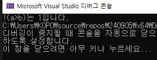 printf("!(a>b)는 %d입니다.", !(a > b));