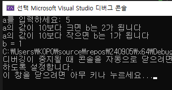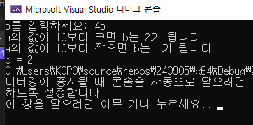 printf("a의 값이 10보다 크면 b는 2가 됩니다\n");