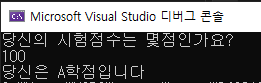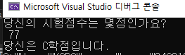 printf("당신의 시험점수는 몇점인가요?\n ");