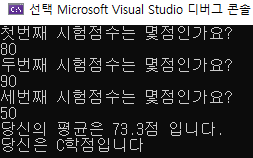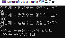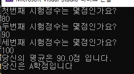 printf("첫번째 시험점수는 몇점인가요? \n");