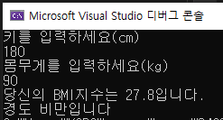 printf("당신의 BMI지수는 %.1f입니다.\n", BMI);