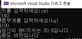 12. if, switch 키와 몸무게를 입력받아 BMI 계산하고 비만 판별