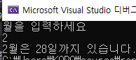 printf("%d월은 %d일까지 있습니다.",a,b);