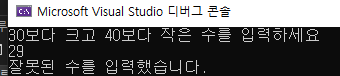 printf("30보다 크고 40보다 작은 수를 입력하세요\n");