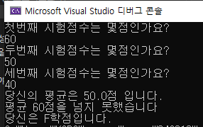 printf("평균 60점을 넘지 못했습니다\n당신은 F학점입니다.");